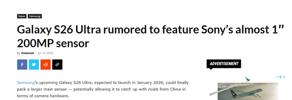 不过,也有消息称,由于该传感器尚未完全准备就绪,可能无法如期用于S26Ultra,存在延期至2027年发布的S27Ultra的可能性。因此,三星仍有可能继续沿用现有的ISOCELLHP2传感器作为替代方案。